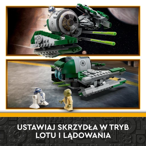 • Zbudowany z klocków model myśliwca Jedi Yody LEGO Star Wars do pełnej akcji zabawy