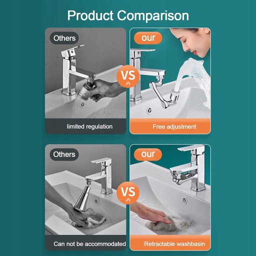 Posiada obracaną o 1080° dyszę do kranu, która z łatwością zakrywa cały zlew i spełnia Twoje wymagania dotyczące różnych kątów zmywania.