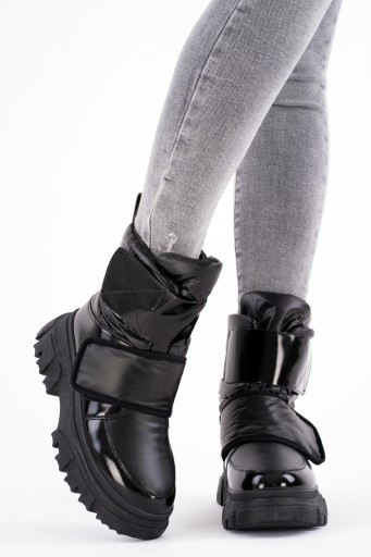 Czarne botki śniegowce damskie na rzepy 39