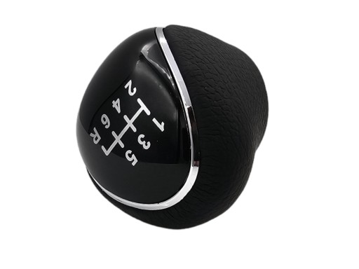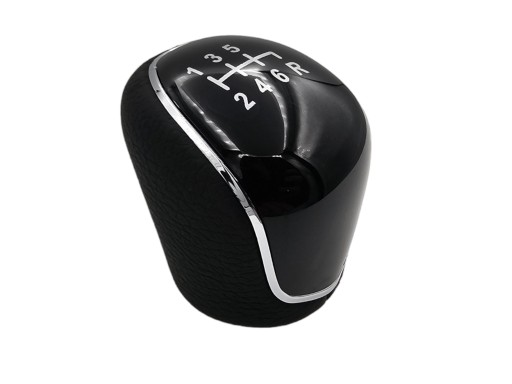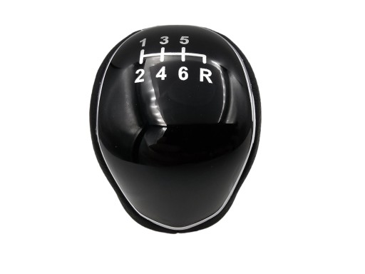 Oferujemy Państwu Gałkę zmiany biegów pokrytą skórą z czarnym kapslem i białym zdobieniem do samochodu Ford :