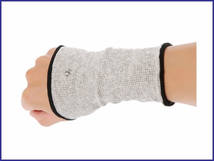 Elektroda tekstylna wykonana z mocnego materiał u do elektrostymulacji nadgarstków. Wykonana z tkaniny z włóknami srebra zapewniające doskonałe przewodnictwo. Kształt i rozmiar elektrody zapewnia precyzyjne przyleganie do powierzchni stawów nadgarstkowych pozwala w sposób precyzyjny i trwały przymocować elektrodę co zabezpiecza ją przed przesunięciem czy rozluźnieniem w czasie terapii. Ta uniwersalna elektroda współpracuje z każdym rodzajem elektrostymulatora. Standardowo elektroda przygotowana jest do podłączenia za pomocą przewodów z końcówkami typu SNAP (napa) 3,5 mm. Dla posiadaczy elektrostymulatorów z przewodami posiadającymi końcówki typu PIN 2 mm producent wyposażył je dodatkowo w przewody-przejściówki pozwalające zastosować elektrody nadgarstkowe także w tego typu elektrostymulatorach.