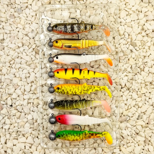 *️⃣Wszystkie gumy w zestawie uzbrojone w super wytrzymałe główki Ball JIGHEAD od Savage Gear o gramaturach od 3gram do 7,5 gram. Główki te są wyposażone w bardzo mocne i super ostre haki z japońskiego drutu stalowego.