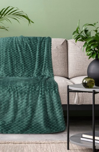 Koc CINDY6 z efektem 3D w eleganckim, ciemno zielonym odcieniu i imponującym rozmiarze 200 cm x 220 cm.