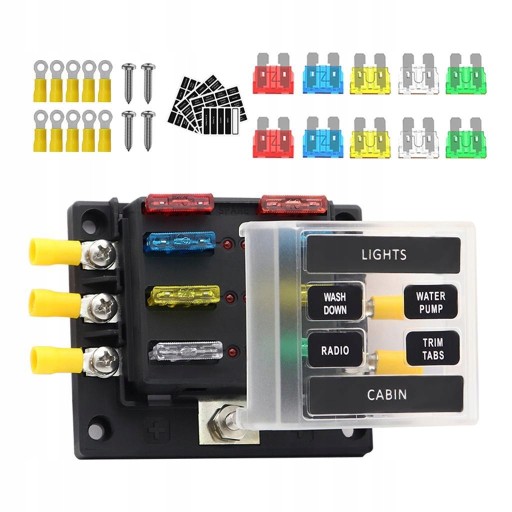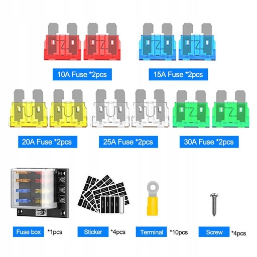 Ten blok bezpieczników ostrzowych akceptuje standardowe bezpieczniki (ATP / ATC / ATO), a każdy obwód ma własną lampkę kontrolną
