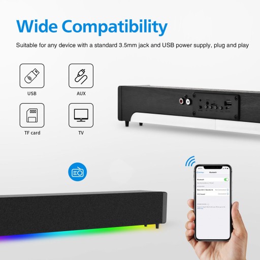 Połączenie bezprzewodowe: Bluetooth w wersji 50 zapewnia szybkie parowanie, zasięg Bluetooth 10m Może również używać AUX, karty TF, pamięci USB do odtwarzania muzyki i jest wyposażony w odbiornik radiowy FM Więc nawet bez urządzenia Bluetooth możesz nadal cieszyć się muzyką