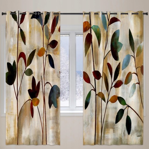 2 szt. Zasłony do druku cyfrowego 3D Wysokie cieniowanie do jadalni Study leaf A