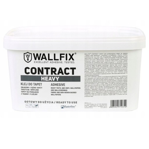 Wallfix Contract Heavy jest profesjonalnym klejem do okładzin i ciężkich tapet tekstylnych i winylowych na podkładzie z tkaniny i flizeliny. Charakteryzuje się dużą siłą przyczepności, wysoką wydajnością oraz odpornością na działanie wilgoci.