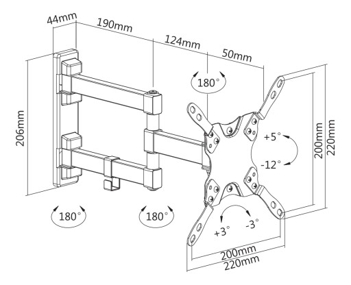 - Standard VESA: 75x75 mm; 100x100 mm; 200x200 mm; 200x100 mm;