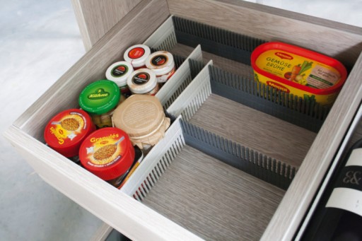 VARIO SYSTEM to uniwersalny, modułowy system do bezpiecznego przechowywania i transportowania wszelkiego rodzaju naczyń i artykułów spożywczych w trakcie podróży kamperem lub przyczepą kempingową czy jachtem. System szczególnie dedykowany do lodówki nadaje się także do każdej szuflady lub szafki dając nam dodatkową oszczędność miejsca. Gwarantuje transportowanie zawartości lodówek i szafek bez przesuwania i bez uszkodzeń.