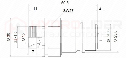 - Gwint od strony przewodu: metryczny 22x1.5