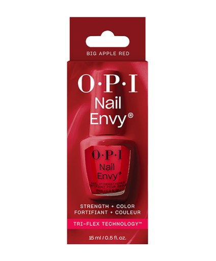 OPI NAIL ENVY Big Apple Red z technologią Tri-Flex™ to odżywka w kultowym czerwonym kolorze, która wzmacnia powierzchnię paznokcia warstwa po warstwie. Wegańska formuła* chroni paznokcie przed kruszeniem się, rozdwajaniem i łamaniem. Rezultat to piękne i zdrowo wyglądające paznokcie. Odpowiedni dla wszystkich rodzajów paznokci. Nail Envy Color łączy w sobie wzmacniające właściwości oraz Twoje ulubione odcienie OPI.