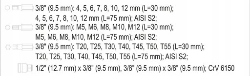 ZESTAW BITÓW IMBUS TORX SPLINE YATO KLUCZE KOŃCÓWKI WKRĘTAKOWE ZE STALI S2