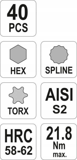 ZESTAW BITÓW IMBUS TORX SPLINE YATO KLUCZE KOŃCÓWKI WKRĘTAKOWE ZE STALI S2 YT-0400