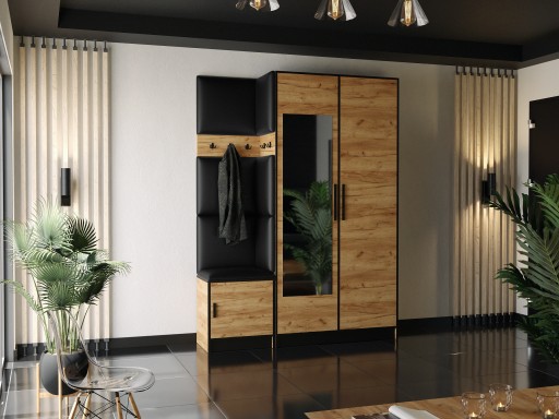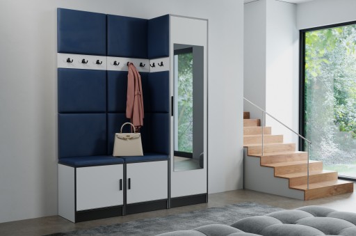 Garderoba BILL 1D z siedziskami, panelami tapicerowanymi i szafą