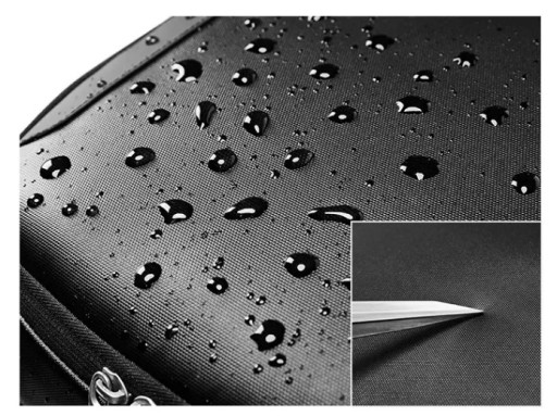 Plecak wykonany jest z wytrzymałego nylonu powlekanego PVC. Zapewnia to wytrzymałość, wodoodporność oraz łatwość w czyszczeniu.