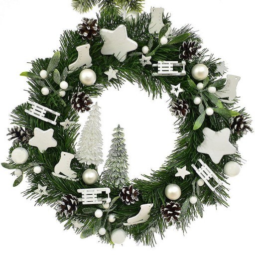 Wianek świąteczny Boże Narodzenie dekoracja drzwi okien na ścianę ozdoba świerk bombki gwiazdki - 45 cm