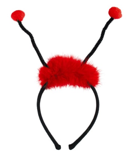 Opaska "Biedronka" wykonana w elastycznego tworzywa sztucznego - dopasowuje się do kształtu głowy. Zdobiona na środku czerwonym puszkiem. Na dwóch czarnych drucikach zamontowane dwie czerwone czułki.