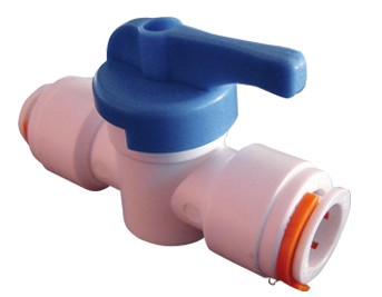 Szybkozłącze 12 mm przeznaczone do instalacji wodnych, wykonane z PVC, wyposażone w zawór