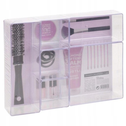 ✅ 6 pojemników o różnej wielkości, dzięki którym możesz uporządkować swoje kosmetyki, biżuterię i inne drobne przedmioty w odpowiedni dla siebie sposób.