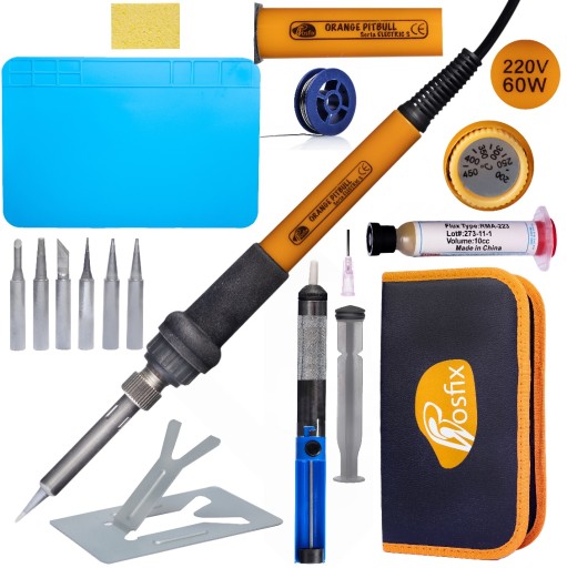 Zestaw narzędzi lutowniczych Rosfix Zestaw 8w1 to kompletny zestaw dla profesjonalistów, zapewniający wysoką precyzję i wygodę pracy. Obejmuje lutownicę Rosfix Orange Pitbull OP60W Seria Electric S, matę lutowniczą, cynę, odsysacz, organizer, gąbkę i topnik RMA-223.