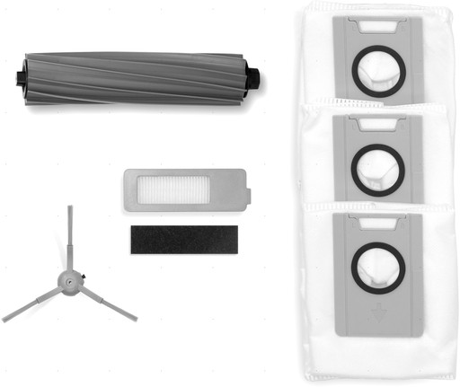 Zestaw zawierający akcesoria eksploatacyjne do robota sprzątającego Welltec R10. W zestawie znajduje się: