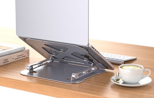 Podstawka pod laptopa metalowa, regulowana, szara.