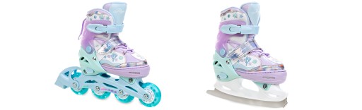 Model 2w1 ma do zaoferowania wymienną płozę łyżwową za pomocą której rolki w prosty i szybki sposób można zmienić w łyżwy.