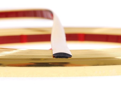 Elastyczna listwa dekoracyjna w kolorze złotym jest odporna na warunku atmosferyczne. Montaż jest bardzo łatwy. Listwa posiada od spodu mocną taśmę dwustronną.