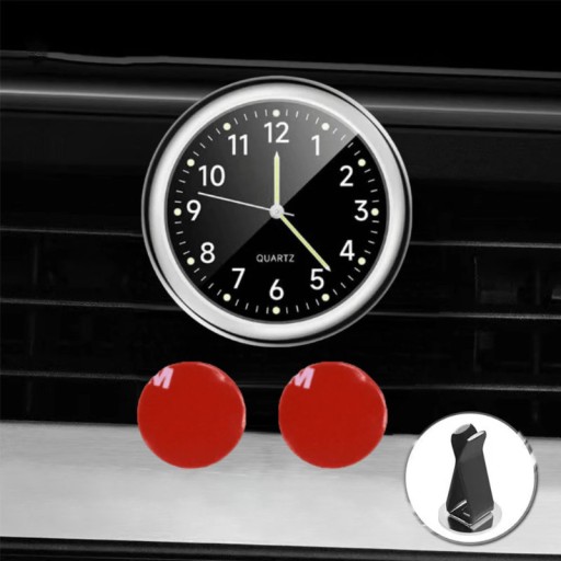 ⌚ Zegarek Samochodowy Quartz Srebrno Czarny + Klips