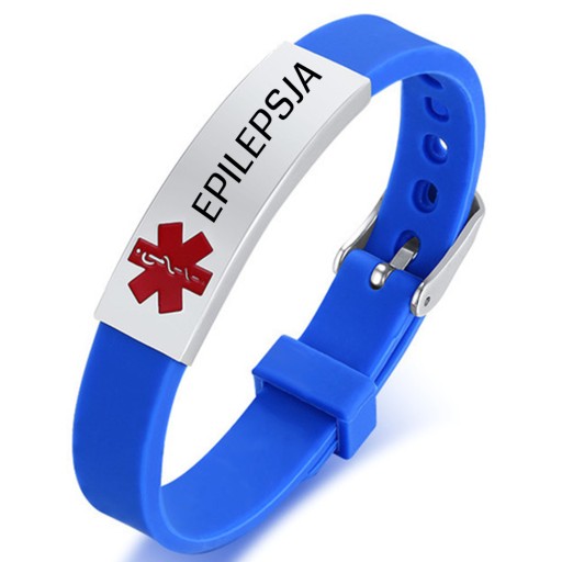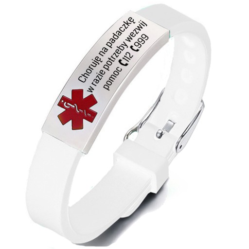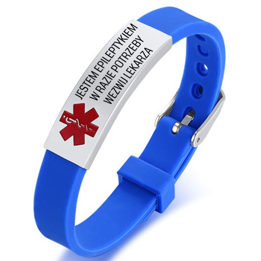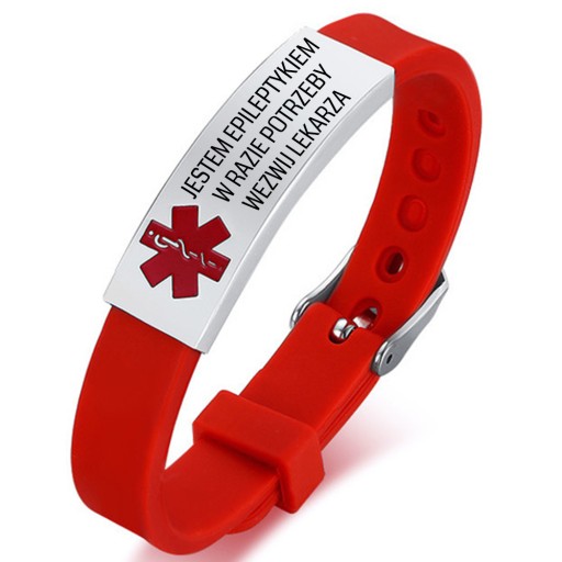 ✅ posiada błyszczącą blaszkę z elementem czerwonego znaczka Eskulapy, która przystosowana jest pod personalizację alertu medycznego dla Epileptyka,