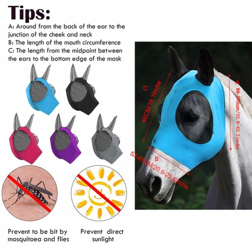 : Siatka wokół oczu i uszu pozwala na widzenie i utrzymywanie się i owady z dala Wykonany z rozciągliwego, oddychającego, obsługującego materiał nylonowy, który zapewnia koniowi najdelikatniejszą ochronę Wystarczająca, nieskutecznie zapobiegająca komarom i nękaniu, ale także 60% promieni Jednoczęściowa zakrywająca od zewnętrznej strony podczas procesu nie podrażnia i oddychające dla deszczu się do długotrwałego noszenia nie dla krótkonożnych, dorosłych, ale także dla źrebiąt kucyków