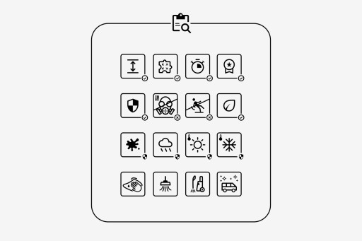 Odpowiedni, zróżnicowany kształt i rozmiar każdego z elementów oraz wydzielone odrębne strefy umożliwiające przycięcie fragmentów dywaników, ułatwiają dopasowanie produktu do odmiennych kształtów podłóg występujących w pojazdach.