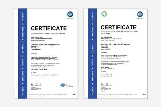 Gumárny Zubří - firma z ponad 80-letnią tradycją powstała w 1935 roku, która specjalizuje się w rozwoju i produkcji wyrobów z gumy. Synonim trwałości i jakości na najwyższym poziomie. Produkty firmy zostały docenione na całym świecie i stosowane są jako oryginalne wyposażenie pojazdów (OEM) wielu koncernów samochodowych, takich jak:
