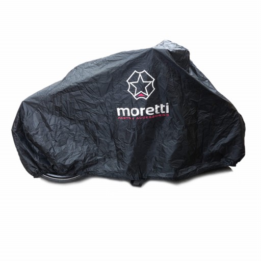 Pokrowiec w kolorze czarnym prezentuje się elegancko i nowocześnie. Strzałka kierunkowa z przodu pokrowca to praktyczny detal, który ułatwia orientację przy zakrytych rowerach.