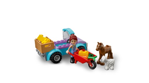Wskakuj do furgonetki, by razem z Mią nakarmić zwierzęta z farmy LEGO® Friends. Jest tam stajnia z otwieraną bramką, zagroda, taczki, bele siana, a także różne elementy jedzenia i narzędzia gospodarskie. Dzięki temu łatwemu do przenoszenia zestawowi w walizce Twoje dzieci nauczą się, jak dbać o zwierzęta. Zestawy LEGO Juniors są odpowiednie dla dzieci w wieku 4–7 lat. W zestawie minilaleczka Mia oraz źrebak i jagniątko. •W zestawie minilaleczka Mia oraz źrebak i jagniątko. •W zestawie akcesoria: marchewka i kosz na jedzenie, jabłko, taczki, grzebień, butelka do karmienia, szufla, grabie, kran, dwie wstążki, czerwone i zielone kwiaty, miska i cztery bele siana. •Dzięki walizeczce LEGO® Juniors podróż nie musi oznaczać przerwy w budowaniu i zabawie.