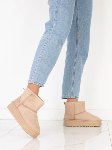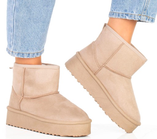 7805 BEŻOWE OCIEPLANE BOTKI ŚNIEGOWCE PLATFORMA WSUWANE 39