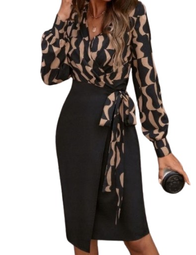 Kopertowa Sukienka Z łączonych Materiałów Z O