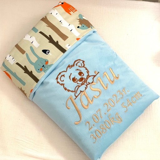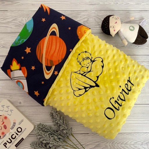 Kocyk dla dziecka o wymiarach 50 x 75 cm ocieplany 100g ( ok.1cm) ociepliną silikonowaną z haftem to prawdziwa perełka w naszej kolekcji.