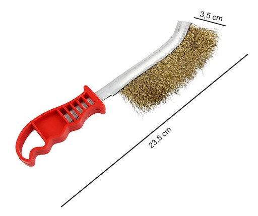 Szczotka druciana z mosiężnym włosiem idealnie sprawdzi się do czyszczenia powierzchni metalowych, uporczywych zabrudzeń rdzy, farby, lakierów, oraz zadziorów z trudno dostępnych miejsc.