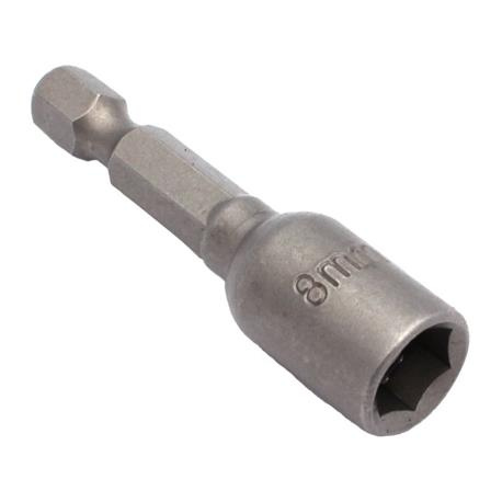 Klucz nasadowy o średnicy 8 mm z trzpieniem Hex 1/4 na wkrętarkę, wiertarkę. Uchwyt posiada mocny magnes.