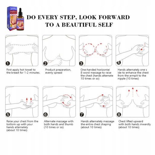 Waga netto: 30ML Nadaje się do: Ludzie z zwiotczonymi piersiami, pomarszczonymi piersiami, nieudanym powiększaniem piersi i ci, którzy dążą do idealnej sylwetki. Funkcje: Unikalny kompleks aktywnych i naturalnych składników pomaga ujędrnić i poprawić piersi, jego działanie liftingujące natychmiast napina tkankę piersi, skutecznie pomaga oprzeć się grawitacji, zapewniając elastyczność i wsparcie. - Popraw suchość piersi, zwiększ objętość kory tłuszczowej, spraw, aby kształt był bardziej pulchny, unieś i ujędrnij skórę piersi, zapobiegnij zwiotczeniu itp, spraw, aby piersi były naturalne, pulchne, jędrne, miękkie, błyszczące i elastyczne.