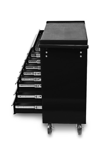 Wysokiej jakości wózek narzędziowy, idealny do warsztatów samochodowych, garaży. Wózek jest całkowicie nowy, oryginalnie zapakowany. Wszystkie szuflady otwierają się bardzo lekko. Szafka pomalowa jest proszkowo. W każdej szufladzie znajduje się mata antypoślizgowa. Na górnym blacie mata 2mm.