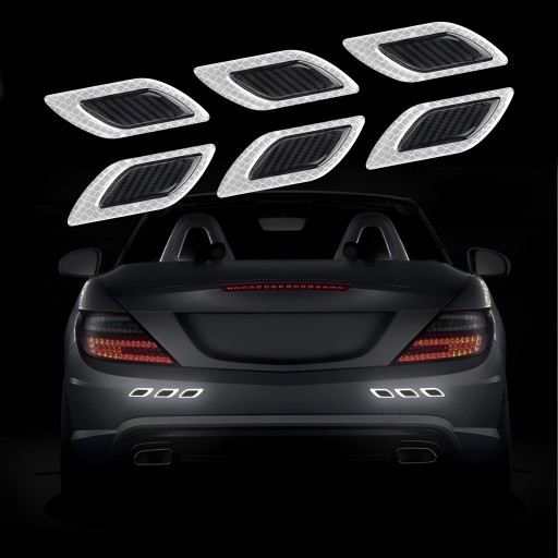 Zestaw 6 ochronnych odblaskowych nalepek na samochód, rower, hulajnogę, motocykl itd, do montażu w wybrane miejsca.