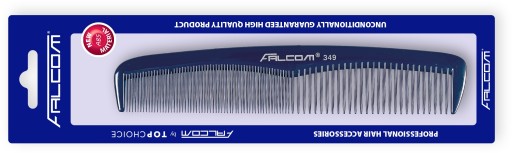 Grzebień FALCON - z widelcem regularnym układem zębów. Mocne i elastyczne, odporne na wysokie temperatury. Wykonane z materiału ABS. Posiada właściwości antystatyczne. Lekki w dłoni. Może być wykorzystywany w fryzjerstwie.