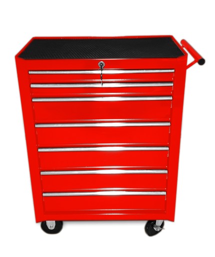 Тележка для инструментов, шкаф для мастерской, 7 ящиков, ПОДНЯТЫЙ, цвет КРАСНЫЙ