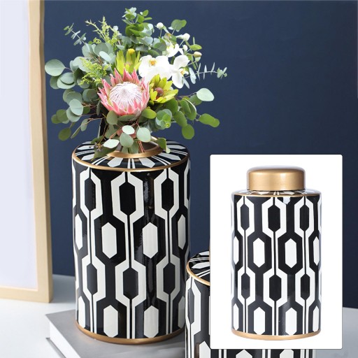 Porcelanowy słoik na imbir Ceramiczny wazon z pokrywką do salonu Blat 17 cm x 17 cm x 33 cm
