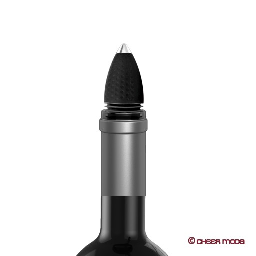 - zatyczka do wina wykonana z tworzywa sztucznego i metalu, z silikonowym uszczelnieniem,