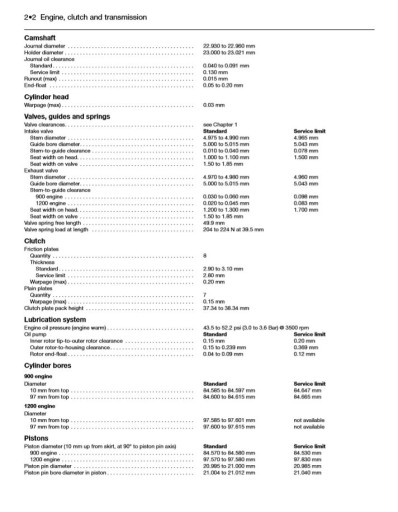 Poradnik zawiera dane regulacyjno-naprawcze i diagnostyczne, technologię napraw silnika, skrzyni biegów i układu napędowego, układu zasilania, wydechowego, zapłonowego, chłodzenia, jak również ramy, zawieszenia, hamulców, kół oraz osprzętu elektrycznego (w tym kolorowe schematy elektryczne) i nadwozia, tabela usterek (przyczyny - usuwanie).