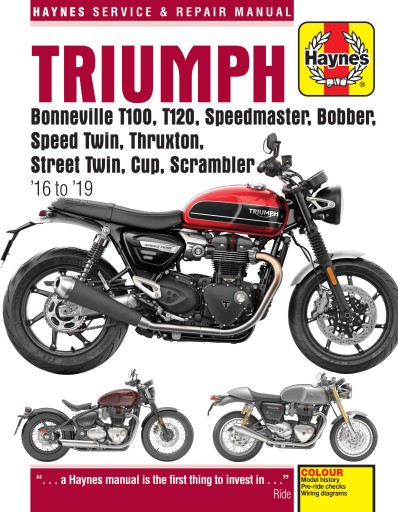 W książce opisano motocykle marki Triumph Bonneville T100, T120, Bobber, Thruxton, Street Twin, Cup & Scrambler, modele produkowane od 2016 do 2017 roku. Książka zawiera historię modelu, przygotowanie motocykla do jazdy, szczegółowe dane techniczne, informacje o przeglądach okresowych, specyfikacje modelu, praktyczne porady i tricki.