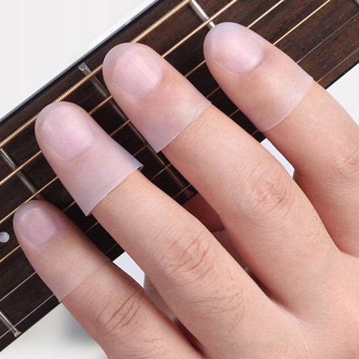 Odpowiedni dla gitarzystów i początkujących: Wiele rozmiarów jest odpowiednia zarówno dla dzieci, dorosłych Nie chronią palce, ale także zwiększają elastyczność palców, ponieważ są miękkie Równie sprawdza się na innych instrumentach strunowych, banjo, mandolinie, ukulele
